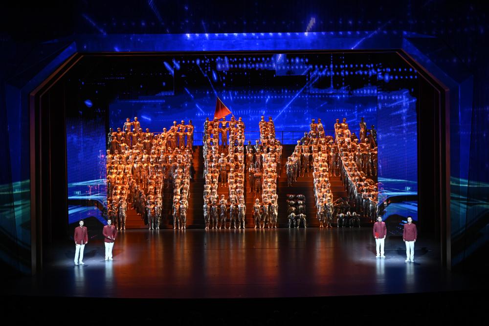 24日的文藝晚會(huì)《美麗新疆》中,創(chuàng)意詩(shī)舞畫《時(shí)代交響》,以絢麗變幻的聲光電,生動(dòng)描繪天山南北的日新月異。